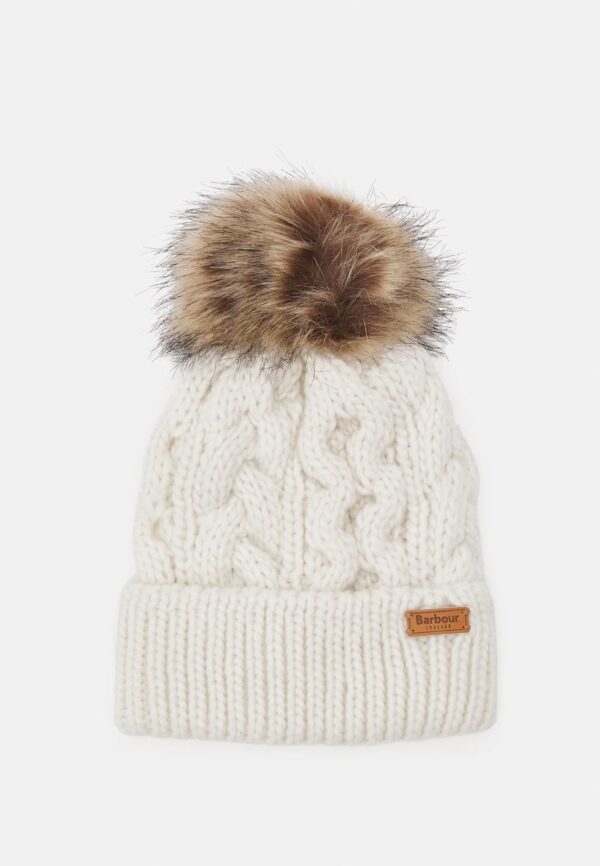 An all-over cable knitted beanie produced in chunky yarn. Turnback hem and faux fur pom. 100% Acrylic Barbour branded badge to outer hem Dry clean only