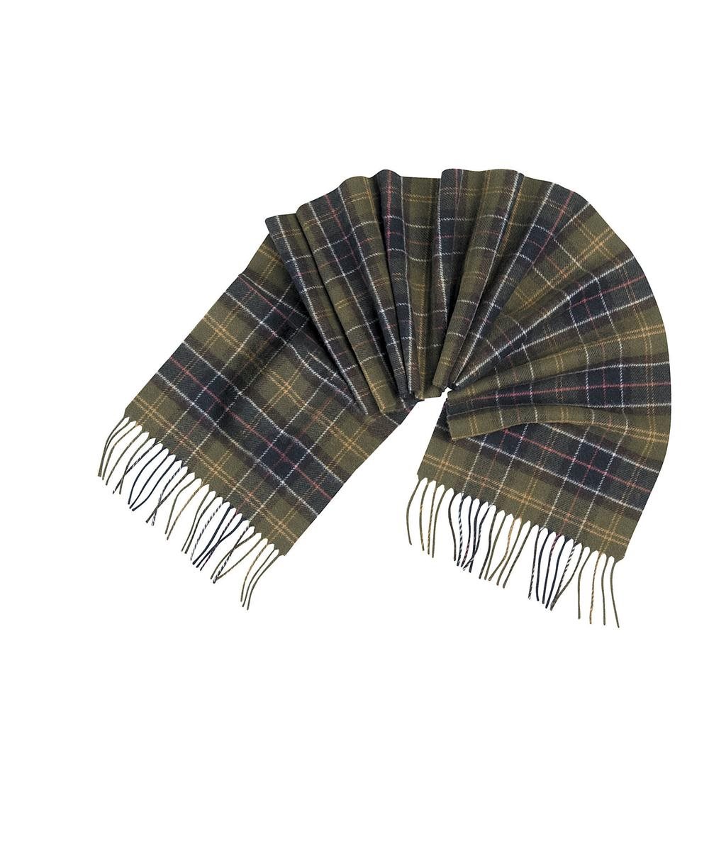 This pure-lambswool scarf carries Barbour’s house tartan and is finished with a fringed hem for a classic look.