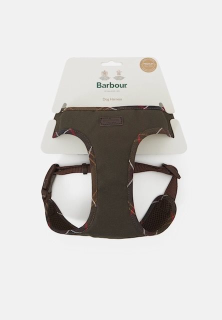 Barbour Travel Dog Harness. Can be secured with a car seatbelt and without removing, can be unclipped and secured to a dog lead, useful for both travel and exercise. Padded chest area and reflective piping.
