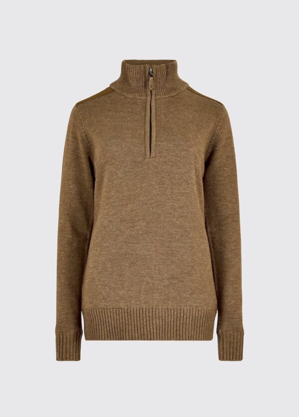 Als je erop trekt in de natuur, dan is onze Hession halve rits trui jouw perfecte partner! De buitenlaag van warm wolmixgaren en de winddichte nylon voering met stretch bieden de ideale bescherming tijdens al je avonturen buiten. De ontspannen pasvorm zorgt voor comfort onderweg, terwijl de natuurlijke kleuren moeiteloos samengaan met je favoriete outdoorlaarzen.