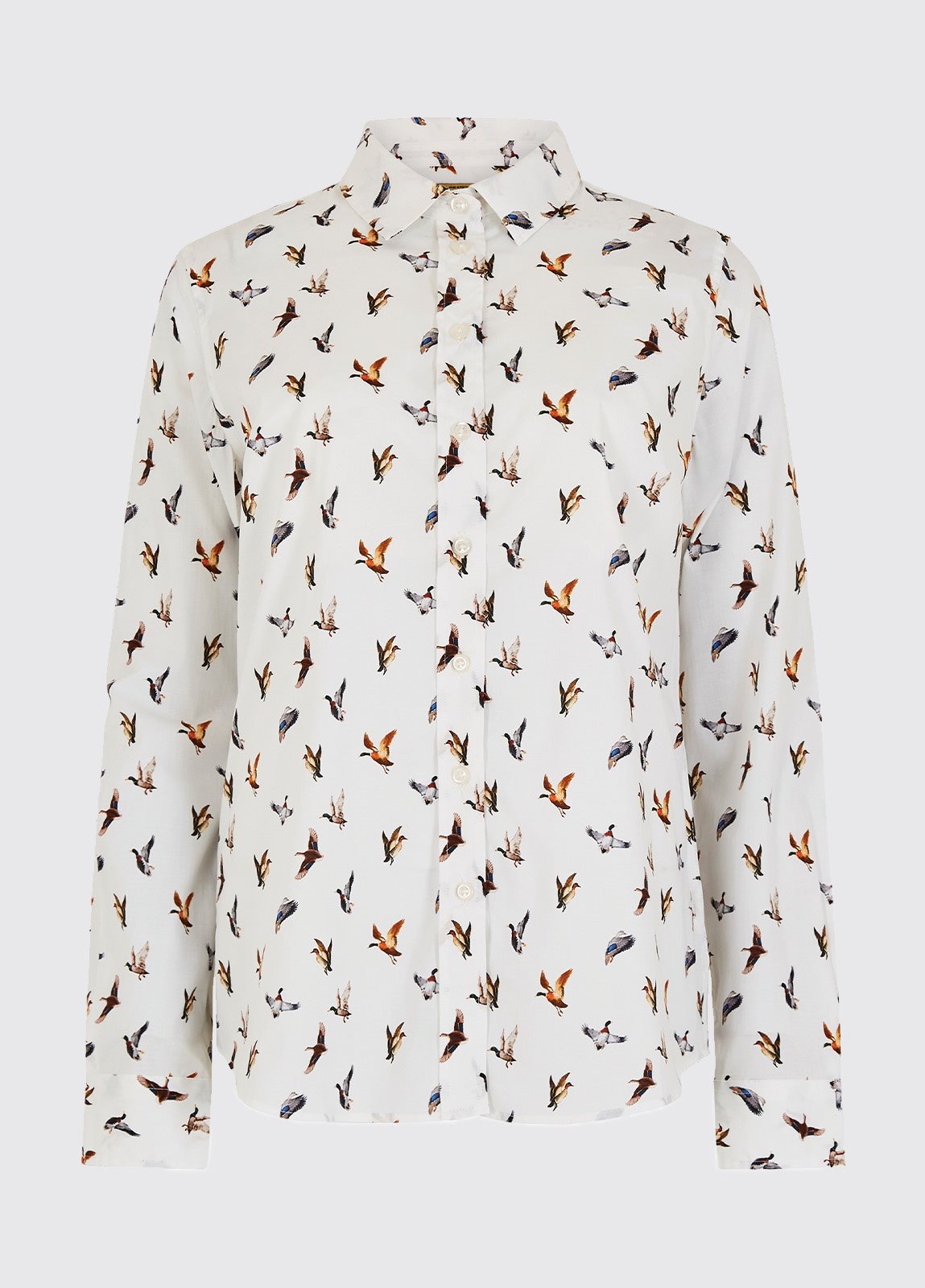 Geef je wintergarderobe een boost met ons Jasmine-shirt met eendenprint. Prachtig getailleerd en gemaakt van comfortabel katoen-elastan voor een ademend draagcomfort met meer bewegingsvrijheid. Perfect als statement item of als onderlaag met de kraag als echte blikvanger.